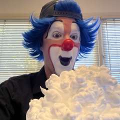 Big Bird the Clown was surprised by MelonieNosha with a big sloppy cream pie to the face